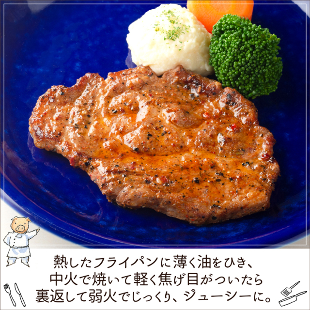 - 豚肩ロース肉(宮城県産)、香辛料、食塩、糖類(砂糖・ブドウ糖)/調味料(アミノ酸)(原材料の一部にゴマを含む)