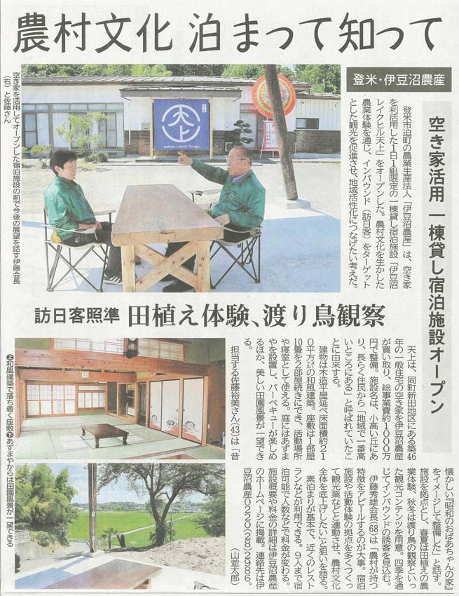 「伊豆沼レイクヒル天上」新聞でも紹介いただきました