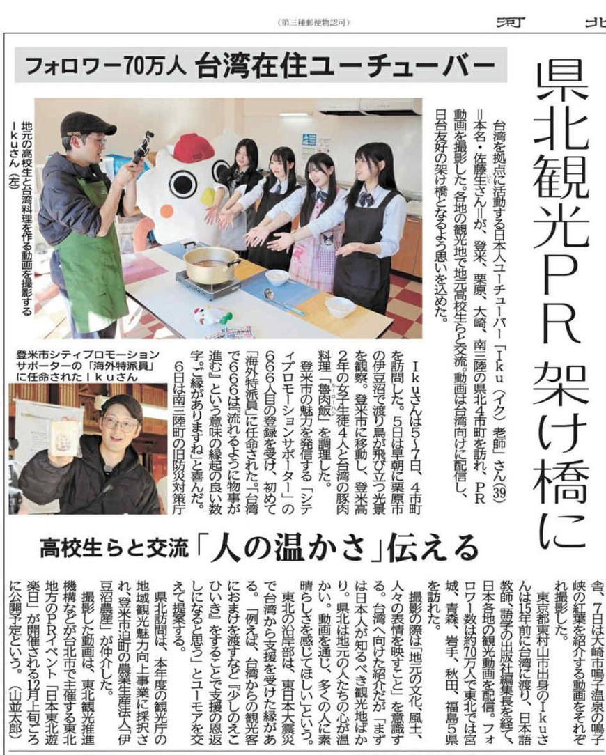 Iku老師さんは、登米市の魅力を発信する