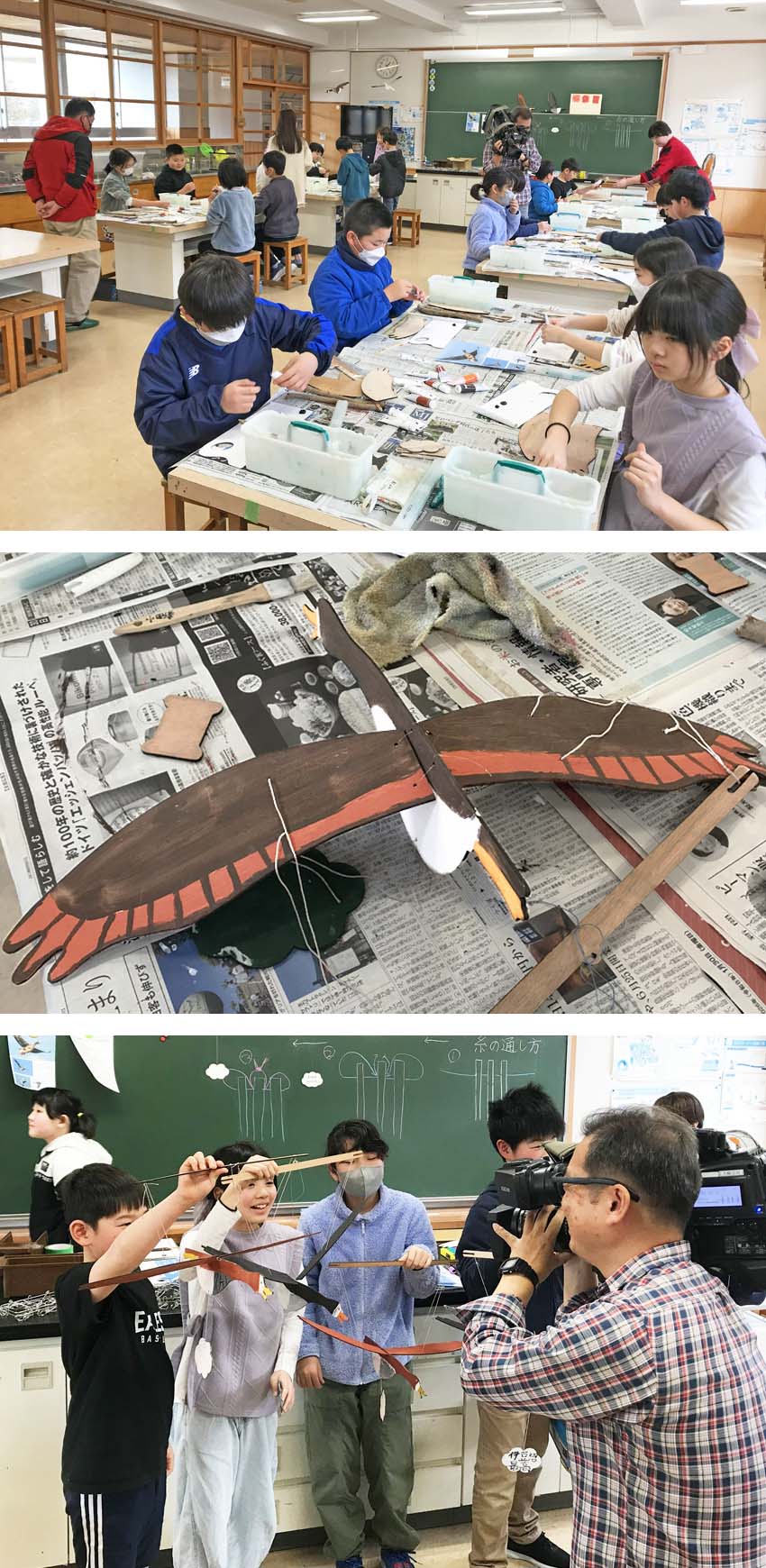 伊豆沼農産の体験教室で、渡り鳥モビールの制作や郷土料理作りも体験。