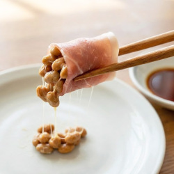 - 食べ方:付属のタレで混ぜた納豆を、生ハムで包んでパクリ。
