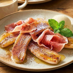 - 食べ方:バナナをバターでソテーし、熱々のうちに冷たい生ハムを乗せます。